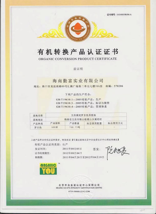 2011年 有機(jī)轉(zhuǎn)換產(chǎn)品認(rèn)證證書 北京中合金諾認(rèn)證中心有限公司